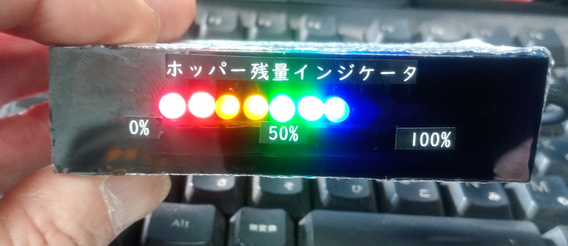 以前紹介したホッパー残量を色分けしたLEDで表示するインジケータの卓上サイズ版を作りました。